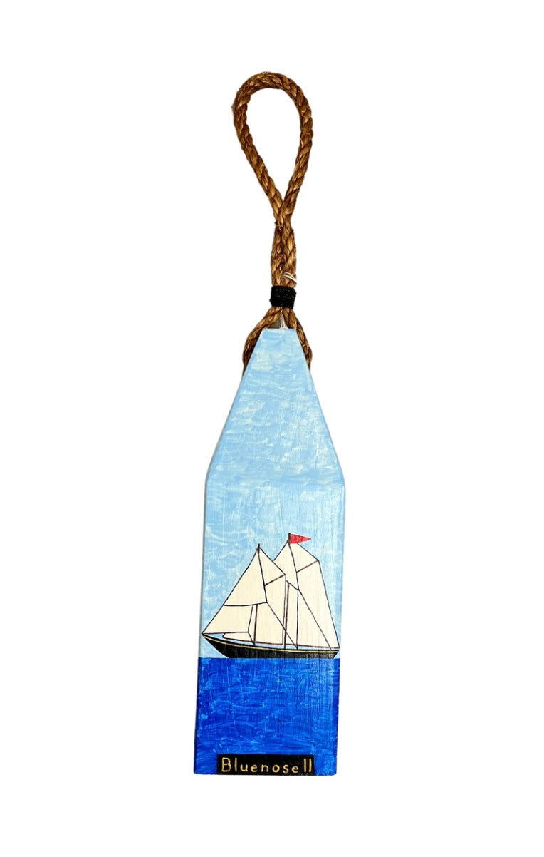 You won't find this handmade Bluenose II buoy just anywhere - It is a custom design, created exclusively for us by one of our favourite local suppliers! When we say handmade, we mean it. The wood used was chopped down, milled and painted by the artist; The rope used for the handle is upcycled/repurposed from fisherman on the SouthWest shore.