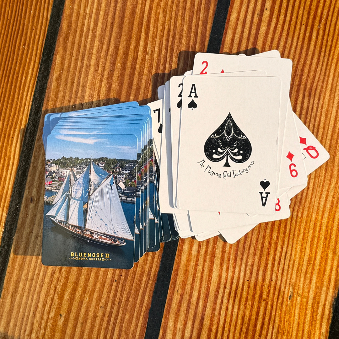 Our custom Bluenose II Under Full Sail playing cards are designed and manufactured in Canada and are exclusive to our store. Great for gifting or as a souvenier for yourself!